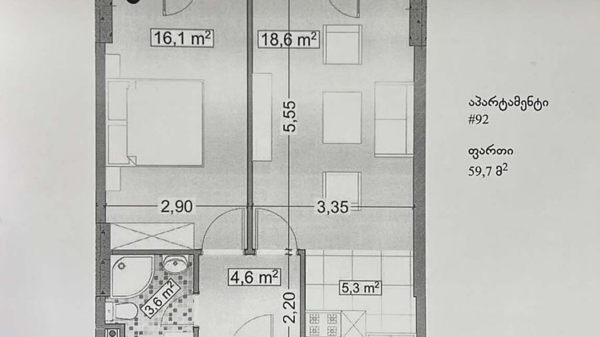 2 ოთახი • 48 მ²