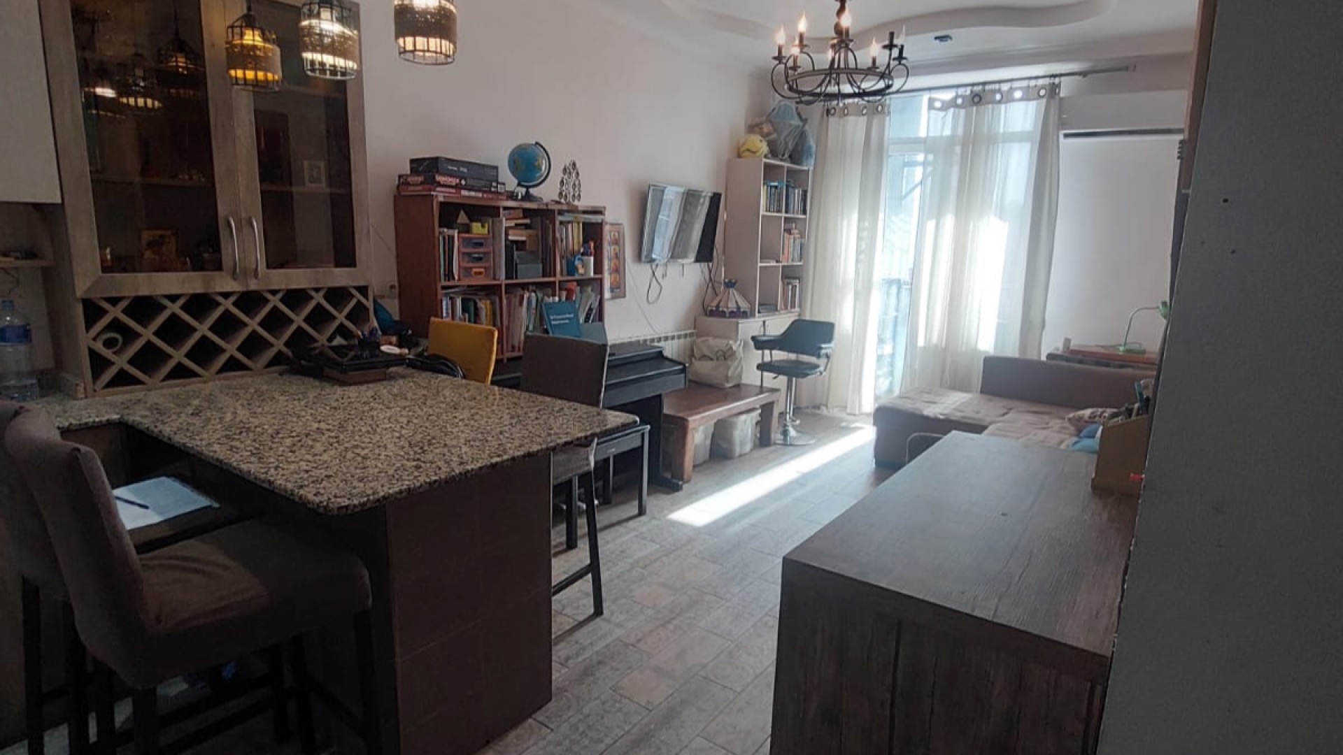 საბურთალოს რაიონში, საირმის ქუჩაზე, იყიდება 2-ოთახიანი ბინა Axix Palace-ში. 62 კვ.მ, 2 ოთახი: გაერთიანებული მისაღები და სამზარეულო, საძინებელი, სველი წერტილი, აივანი მშვენიერი ხედებით წყნეთსზე და თბილისზე. გოძიაშვილშის პარკტან ახლოს. სახლი აღჭურვილია ყველა საჭირო კომუნიკაციით და კეთილმოწყობილია. 2 კონდიციონერი, დიდი მაცივარი, ღუმელი, გაზქურა, გამწოვი, მტვერსასრუტი, სარეცხის მანქანა. სამზარეულო დამზადებულია ინდივიდუალურად, ბართან ერთად და გრანიტის ზედაპირებით. ნათელი საძინებელი. ლობიში დაცვა 24 საათის განმავლობაში, ორი ლიფტი. (53 ლარი, თვიური გადასახადი). პირველ სართულზე ორი მაღაზია, მოპირდაპირ მდებარეობს 1 ექსპერიმენტალური სკოლა, ეკლესია აფთიაქი და ბევრი მაღაზია. ძალიან პრესტიჟული ადგილია.
